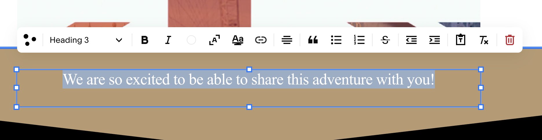 7. An editing bar will pop up above the type box. This welcome type type should be Heading 3. Other type should be other choices from the drop down menu, mainly Paragraph 1 or Paragraph 2. As you type, the type box will expand accordingly, or reduce accordingly, so you don’t need to change the actual box the type is in. Once edits are complete, in the upper left hand corner, click Save then Exit.