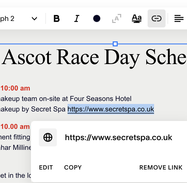 A long toolbox should appear above it. Click on the “link” icon.